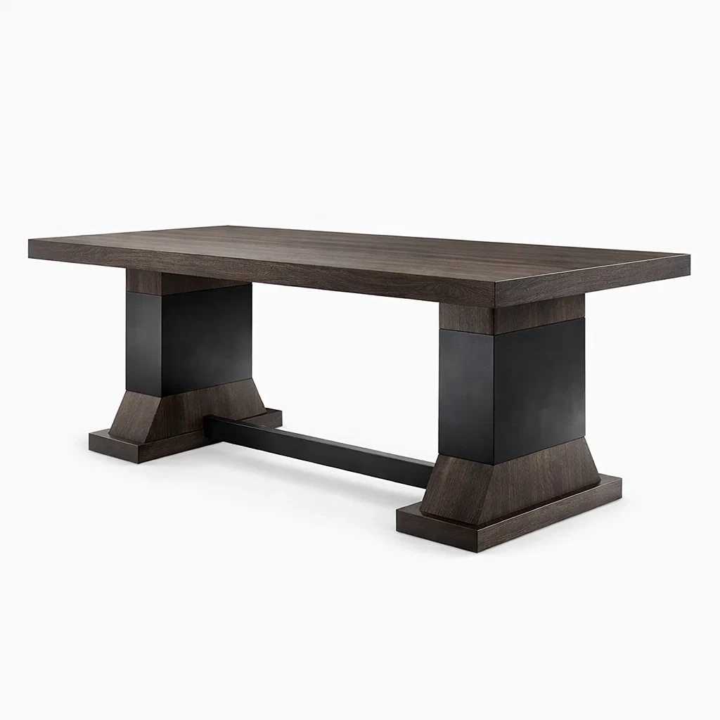Table de salle à manger rectangulaire en bois et métal
