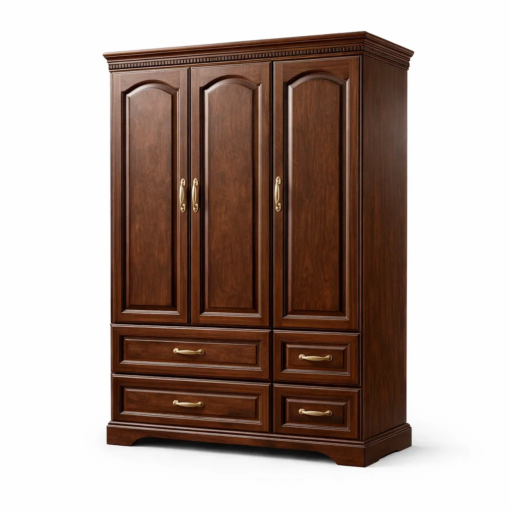 Armoire en bois massif avec trois portes et quatre tiroirs