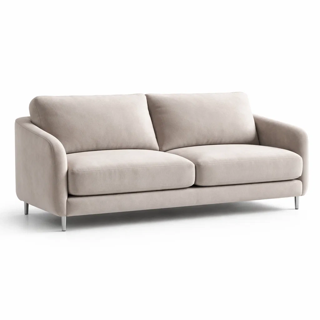 Ce canapé 3 places présente un design contemporain. La structure est en bois massif et panneaux de particules pour assurer solidité et durabilité. Le revêtement est en tissu 100% polyester. Les pieds sont en aluminium assurant stabilité.