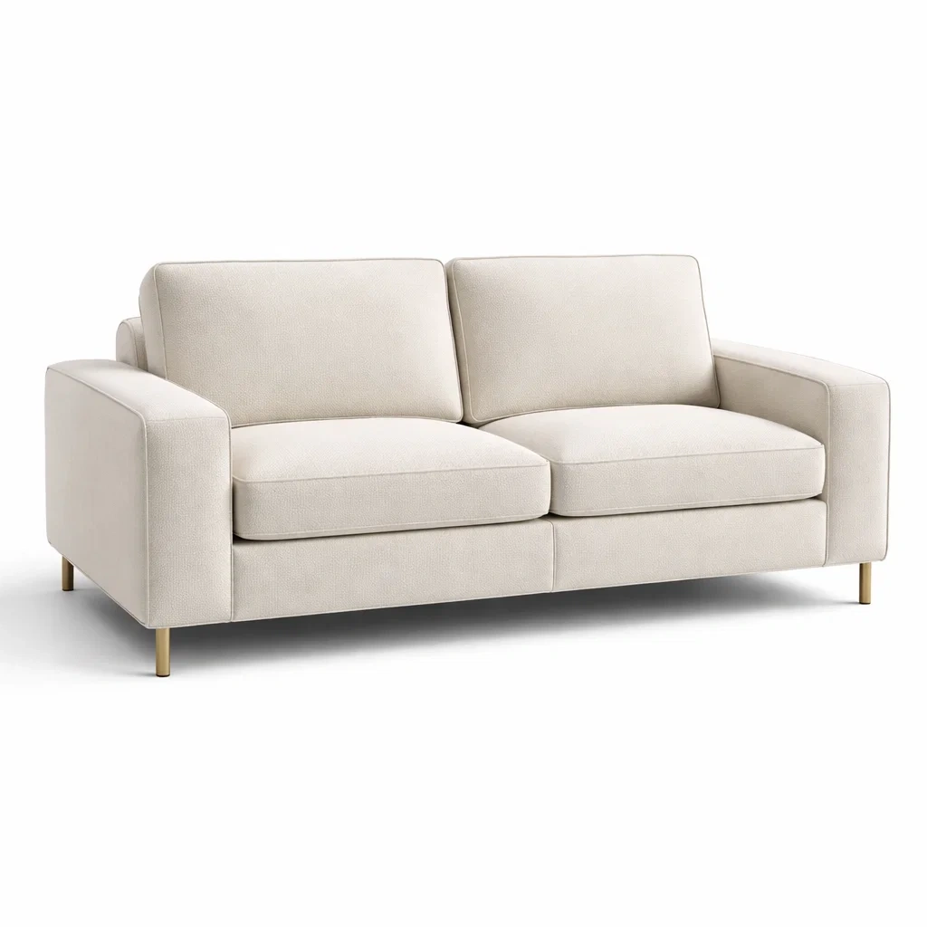 Canapé 3 places en tissu beige avec pieds métalliques dorés