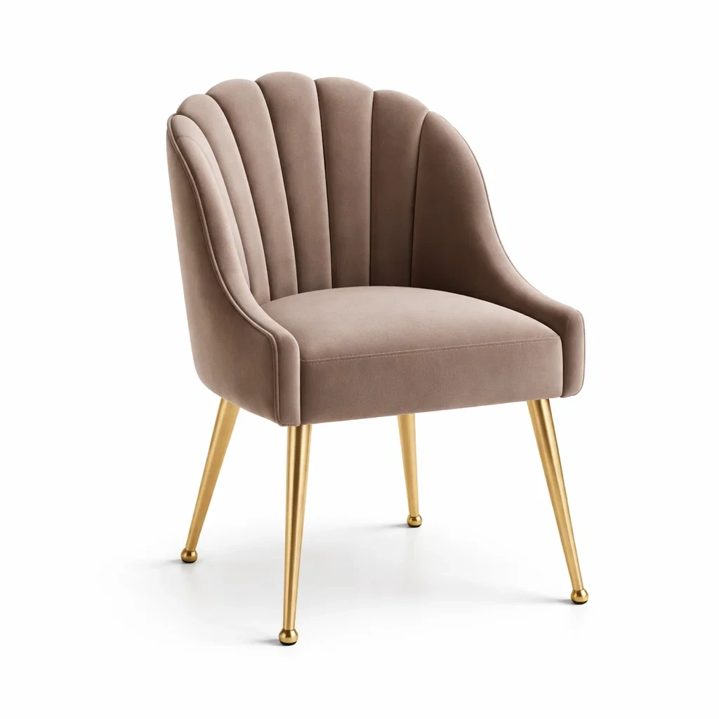 La chaise est recouverte d'un velours doux et agréable au toucher. Les pieds sont en métal avec une finition dorée. La chaise mesure 82 cm de hauteur, 60 cm de largeur et 62 cm de profondeur, avec une hauteur d'assise de 45 cm.