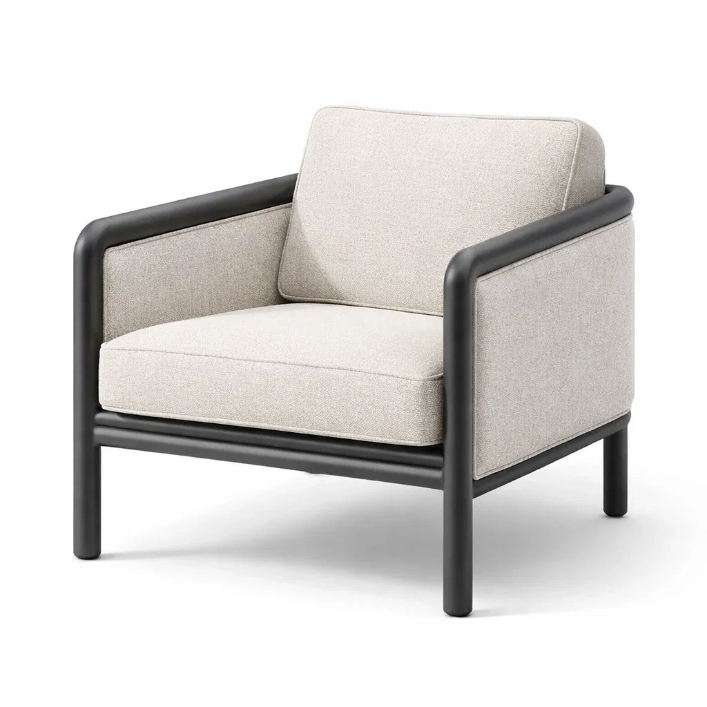 Fauteuil en tissu polyester beige avec cadre en métal noir