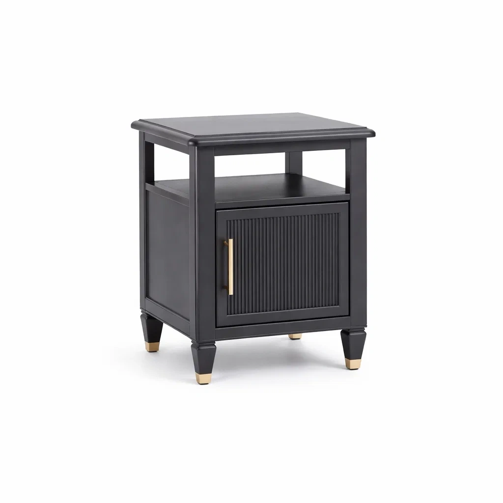 Matériau principal : Bois d'ingénierie avec surface laquée noire. Dimensions : Longueur 50 cm, Largeur 40 cm, Hauteur 60 cm. Type de porte : Battante à rainures, poignées en métal brossé doré. Espace de rangement : 1 porte, 1 étagère ouverte. Poids net : 12 kg. Assemblage requis.