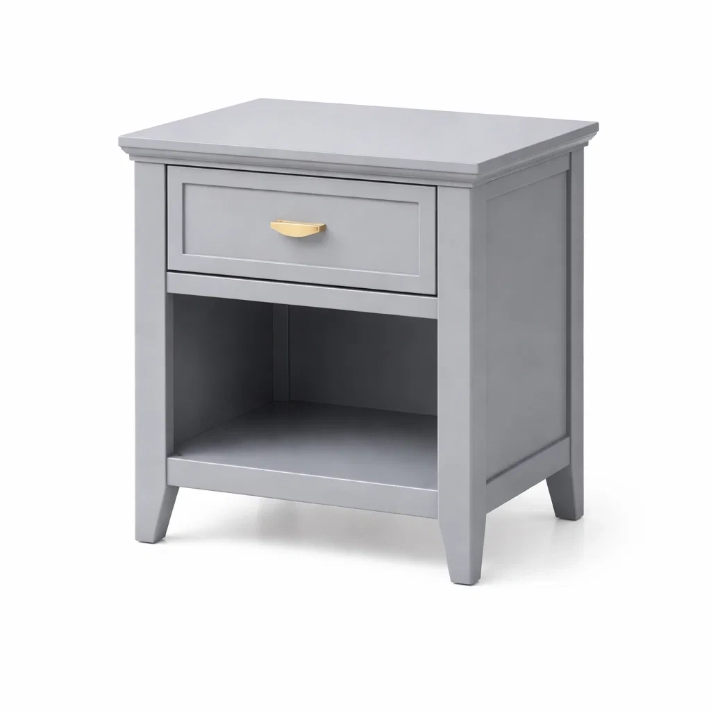 Table de chevet en bois gris avec tiroir et étagère 48x39x57 cm