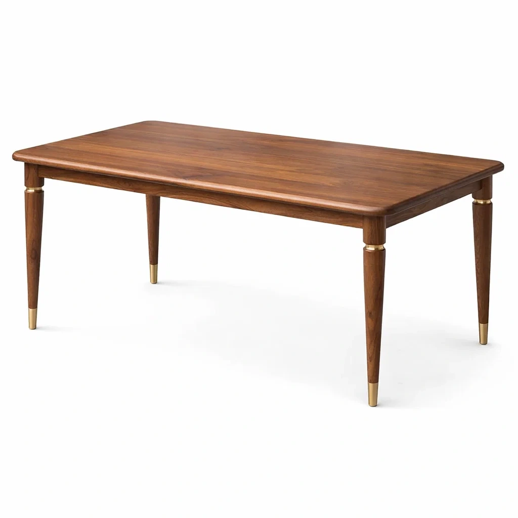 Table de salle à manger rectangulaire en bois de noyer et métal doré 150x80x75 cm