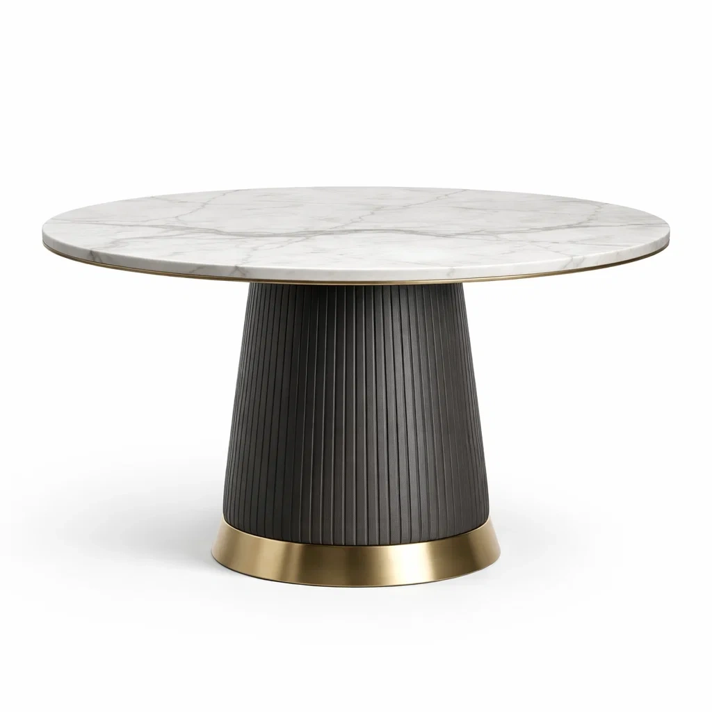 Table de salle à manger ronde en marbre blanc avec base noire et dorée
